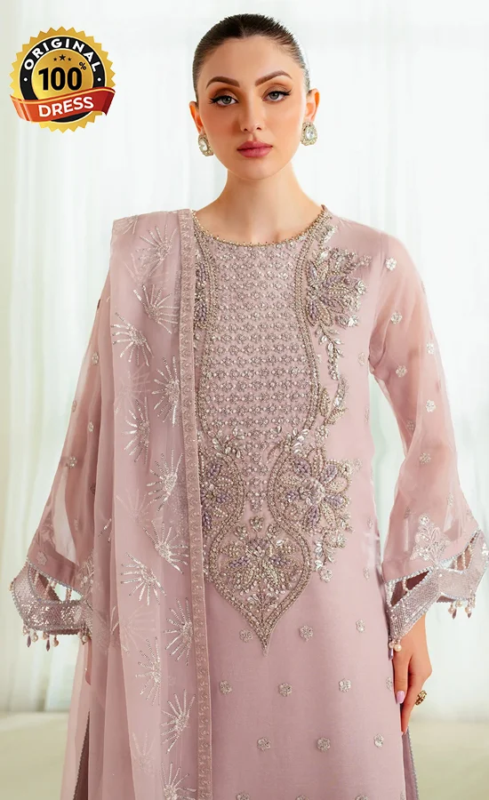 • Soft chiffon for the front, back, and sleeves with neat embroidery