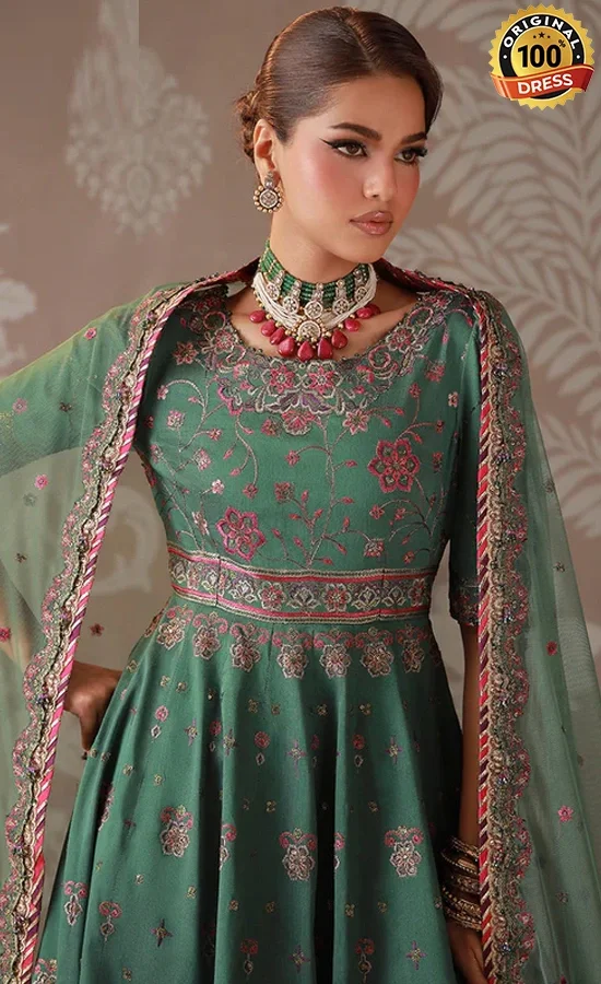- 2.5 meter embroidered dupatta with 4 side border on sage green net