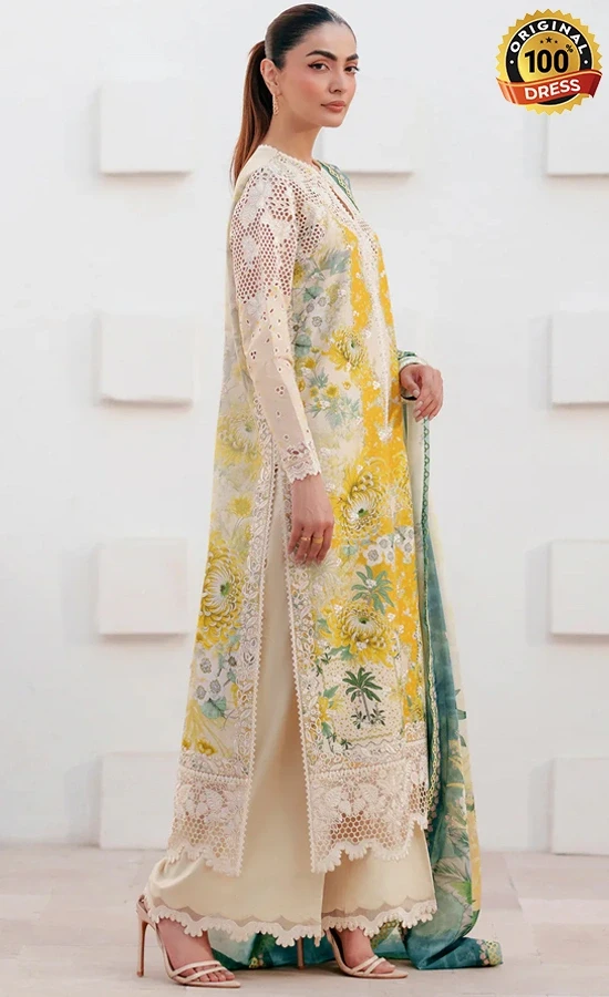 - Digital printed embroidered front 1 pc mustard printed lawn