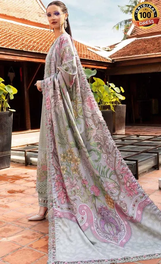 Buy Maria B Embroidered Twill Linen MPT-2802-A Dress Now!