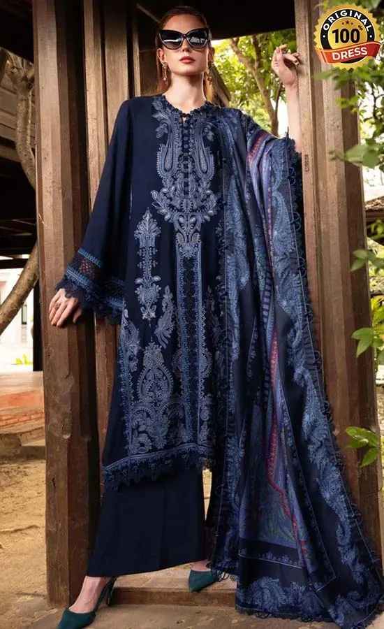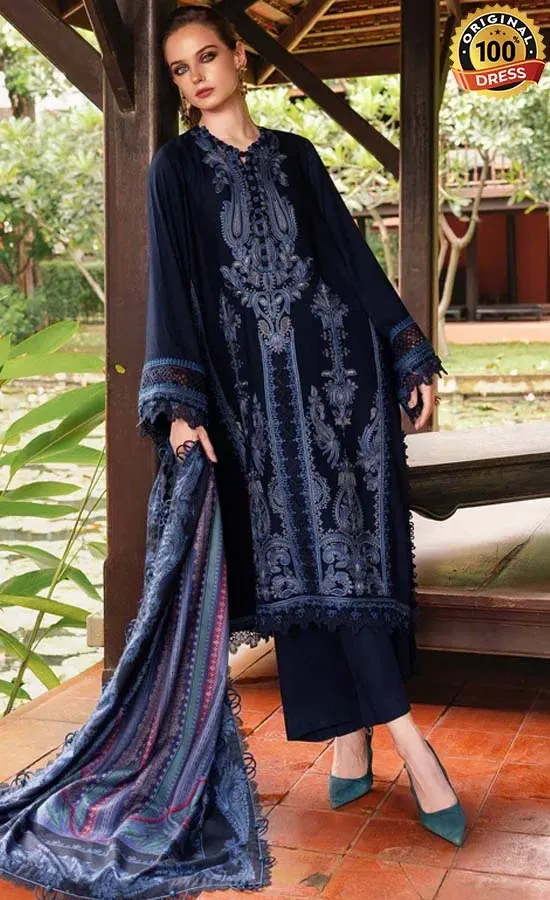 Buy Maria B Embroidered Twill Linen MPT-2803-B Dress Now!